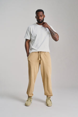 The ADAM Organic Cotton Jogger in Croissant combines premium weight brushed sweat jersey with a soft, garment-dyed finish for lasting comfort and style. Featuring an elasticated waist with a drawstring, these joggers offer a secure, adjustable fit. Ethically produced and vegan, they let you relax with confidence, knowing your choice supports sustainable and responsible fashion.