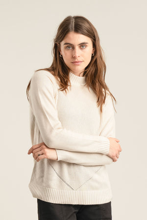 The KATE Merino Wool Jumper is crafted from 100% premium merino wool, delivering natural warmth and softness ideal for winter. Its ribbed body panel and high chunky neck provide added comfort and protection against the cold. Designed with a long, loose fit and narrow sleeves, this sand-colored jumper offers an effortlessly relaxed yet refined look, perfect for layering or wearing on its own throughout the colder months.