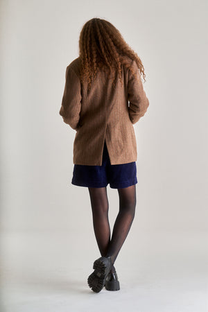 The OPHELIA blazer combines sustainable style and comfort with 80% recycled polyester and 20% recycled wool. Its oversized boyfriend cut offers a relaxed yet polished look, while corozo buttons and an optional belt add thoughtful, eco-conscious details. Fully lined for a smooth fit, this biscuit-coloured blazer is crafted in a SEDEX-audited, vegan-friendly factory, making it a responsible choice without compromising on style or ethics. Perfect for those who value both fashion and sustainability.