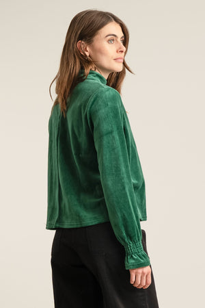 The ALICE Velvet Top in green blends natural comfort with thoughtful design. Made from 80% organic cotton and 20% recycled polyester, its winter-weight velvet feels warm and soft against the skin. Details like the smocked cuffs and cut-out neck add a subtle, stylish touch. Crafted in a SEDEX-audited factory and fully vegan, this top offers a conscious choice for sustainable, ethical fashion that doesn’t compromise on comfort or style.
