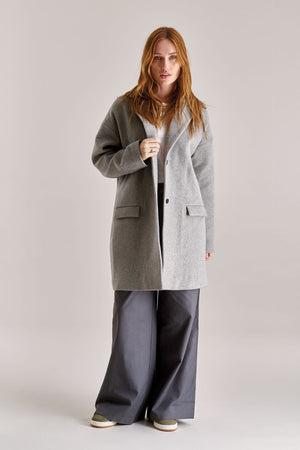 The OLIVIA Coat blends eco-conscious materials with effortless style. Made from 50% recycled wool and 50% recycled polyester, it’s warm and sustainable. The 100% cotton lining adds breathability and comfort, while corozo buttons provide natural, eco-friendly accents. Its oversized boyfriend shape and dropped sleeves create a relaxed, modern silhouette perfect for everyday wear. Fully lined and crafted in a Sedex-audited factory, this grey coat is a thoughtful choice for those seeking both quality and responsible fashion.