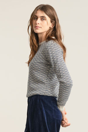 Komodo’s Japanese inspired TARA jumper is made from 100% Organic cotton and features a jacquard wave design. Available in classic mono Black & White or Tan & Black colour options.