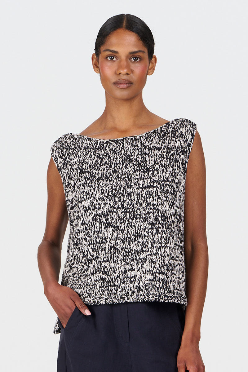 Effortless layering essential crafted from 100% organic cotton. This versatile black and white vest offers breathable comfort for everyday wear, perfect for pairing with your favourite pieces. Sustainably made for the conscious wardrobe.