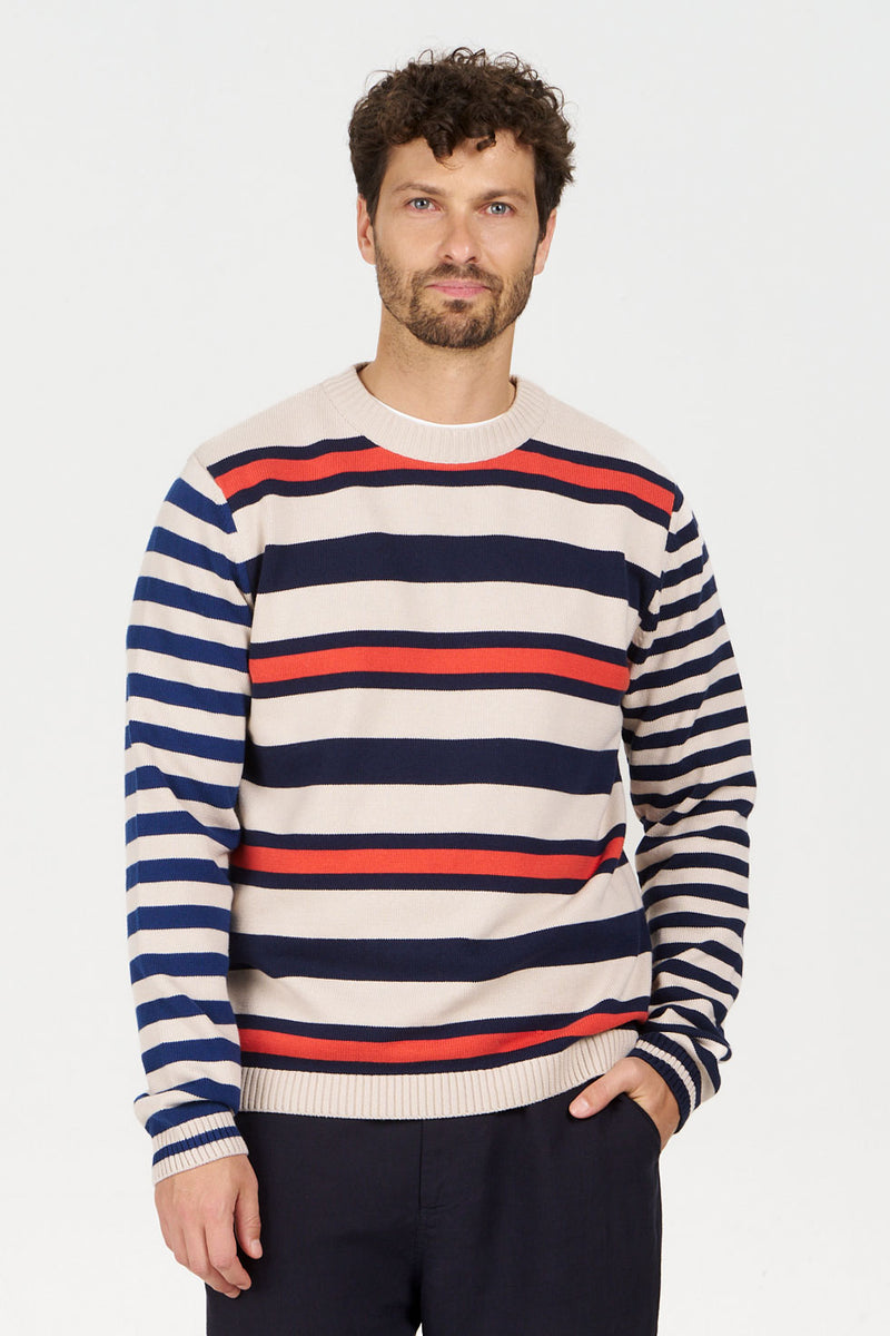 Made from 100% organic cotton, the MASH UP jumper features a bold striped design that adds character to any outfit. Its soft, breathable fabric will keep you comfortable. A versatile piece that fits effortlessly into any wardrobe.