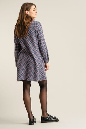 This PEARL Organic Cotton Dress in a rich purple hue combines comfort and conscience. Made from 100% organic cotton brushed flannel, it offers a soft, warm feel while supporting sustainable fashion. The A-line silhouette with mini length creates an effortless, flattering look, complete with practical side pockets. Ethically produced in a Sedex-audited factory and finished with durable, branded corozo buttons, this dress is an inviting choice for those who value style with integrity.