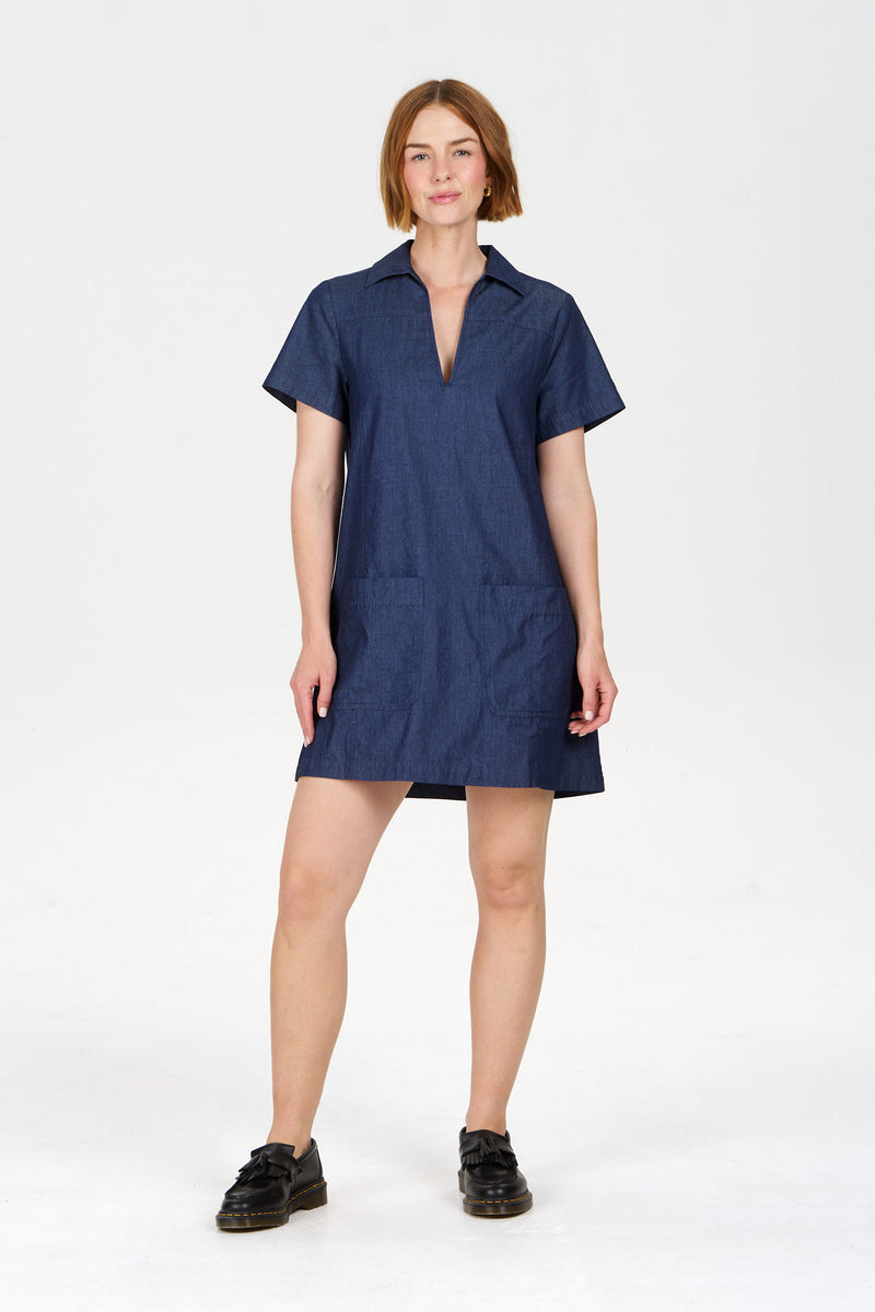 The TALIA dress offers a short relaxed fit in a versatile mid-wash tone. Perfect for everyday wear, this piece combines comfort with understated style. The breathable fabric works year-round.